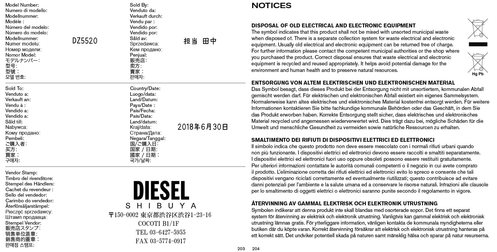 ディーゼルの時計(TIMEFRAMES)・ジュエリーは、フォッシルとライセンス契約を結び製品を製造いたしており、日本への正規輸入及び修理実務については株式会社フォッシルジャパンにて行われております。