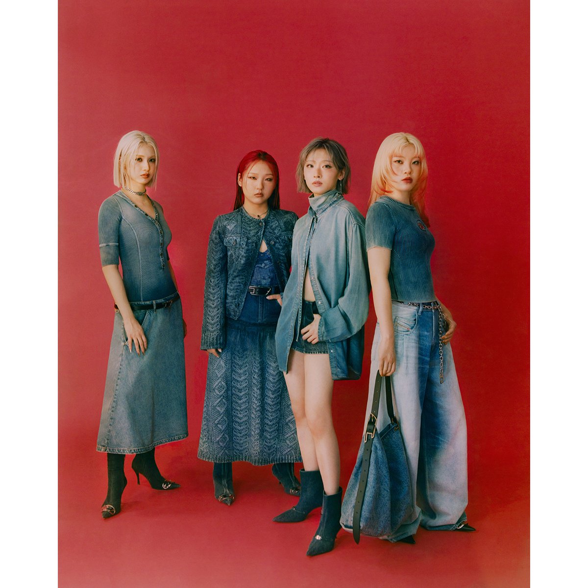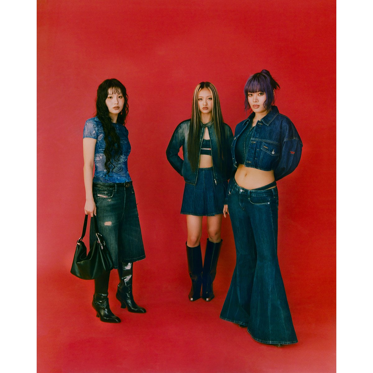 公開されたアンバサダービジュアルでは、デニムを基調としたアイコニックなルックを披露。パンツをはじめ、トップスやジャケット、デニムディテールのアンダーウェア、新アイコンバッグ「D-LINE」などを着こなし、ディーゼルの多面的な魅力を表現しています。