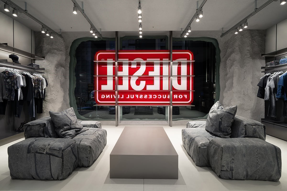 この新店舗は、ブランドの存在感を力強く高める新たなデスティネーションとして再構築されており、クリエイティブ・ディレクターのグレン・マーティンスのもとで進化するディーゼルのビジョンを体現しています。